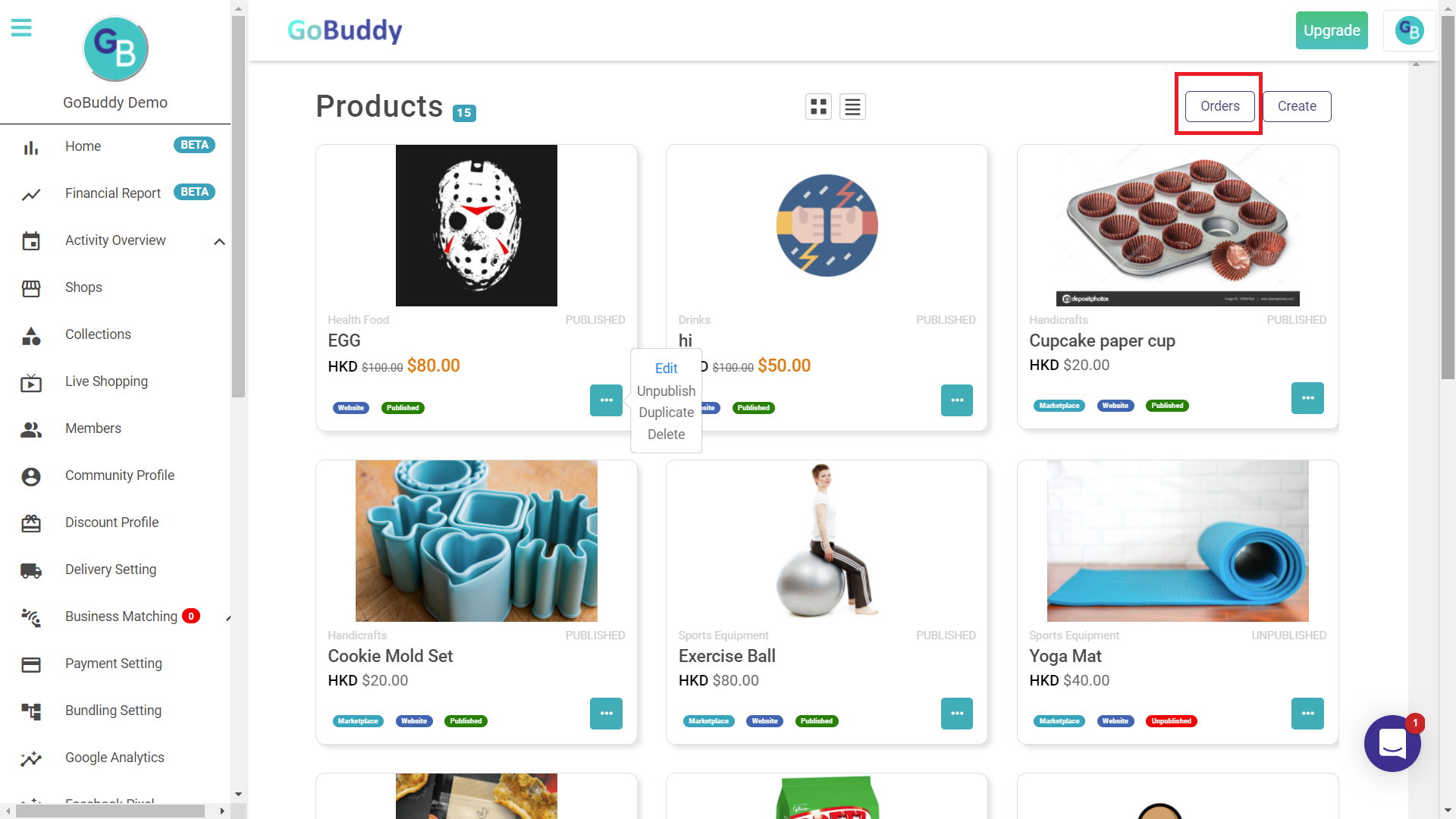 After clicking ‘Orders’, you can see a list of confirmed orders.