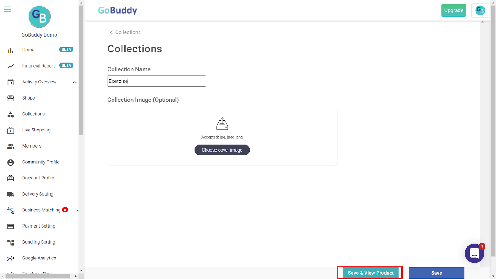Enter your collection name and upload a collection cover photo (optional). Click ‘Save and View Product’ to move on.